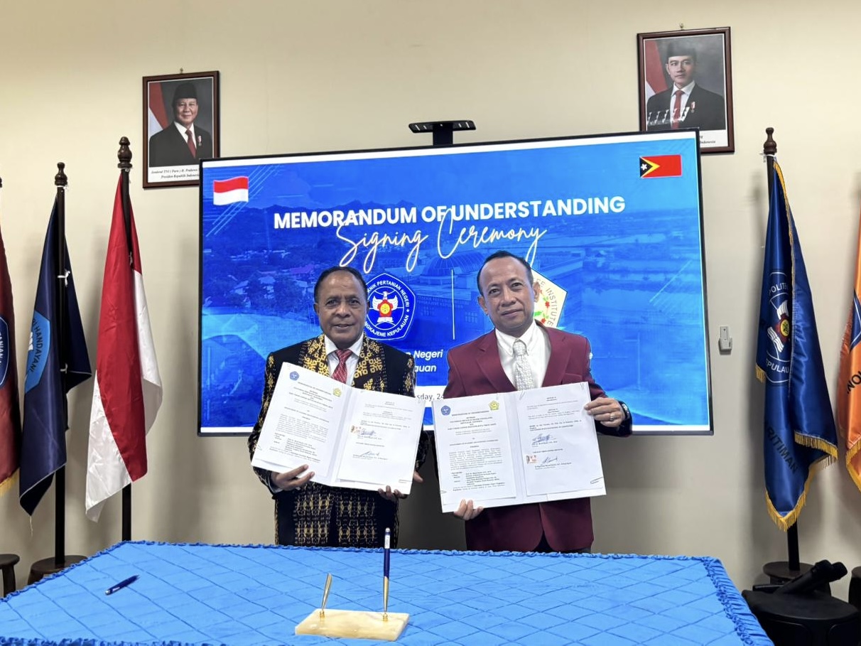 MoU tersebut ditandatangani langsung oleh Direktur Polipangkep, Prof. Dr. Mauli Kasmi, S.Pi., M.Si., bersama Rektor ETCI, Dr. Eng. Lucio Marcal Gomes, M.Eng., Agron. Penandatanganan turut disaksikan oleh para Wakil Direktur, Ketua Satuan Pengawas Internal, para Ketua Jurusan, serta Tim Kerja Sama Polipangkep.